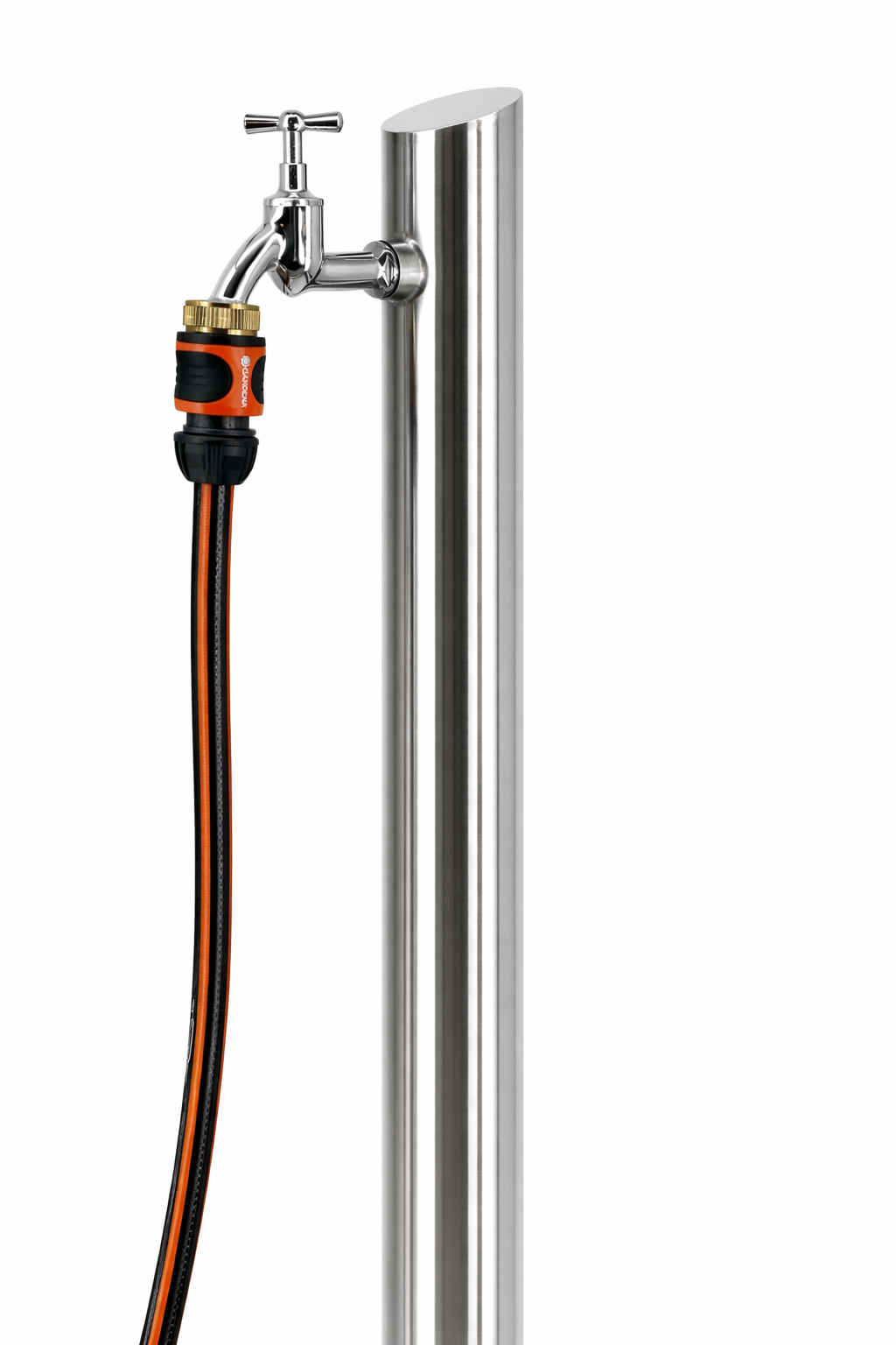 Słupek ogrodowy do poboru wody z sieci miejskiej, studni lub zbiornika na wodę opadową.