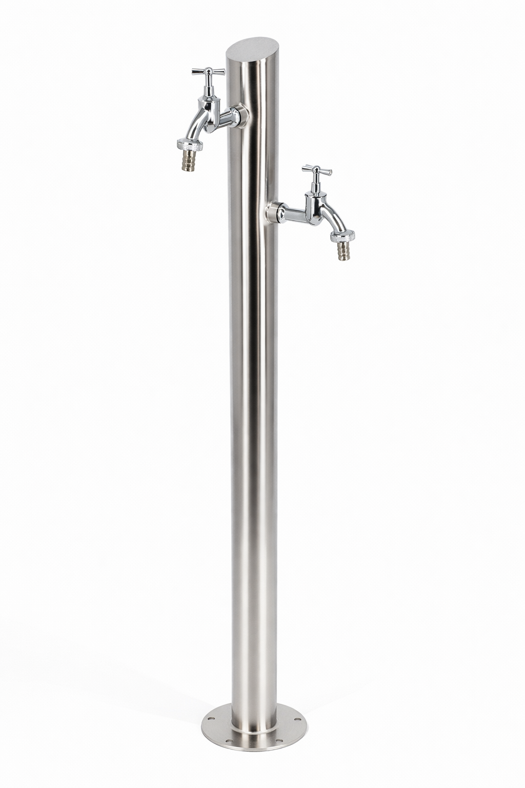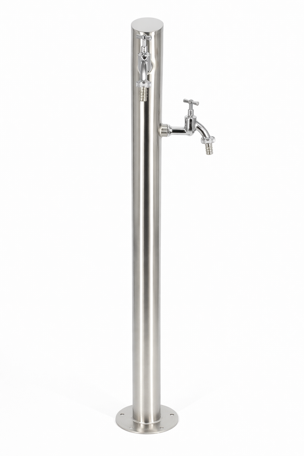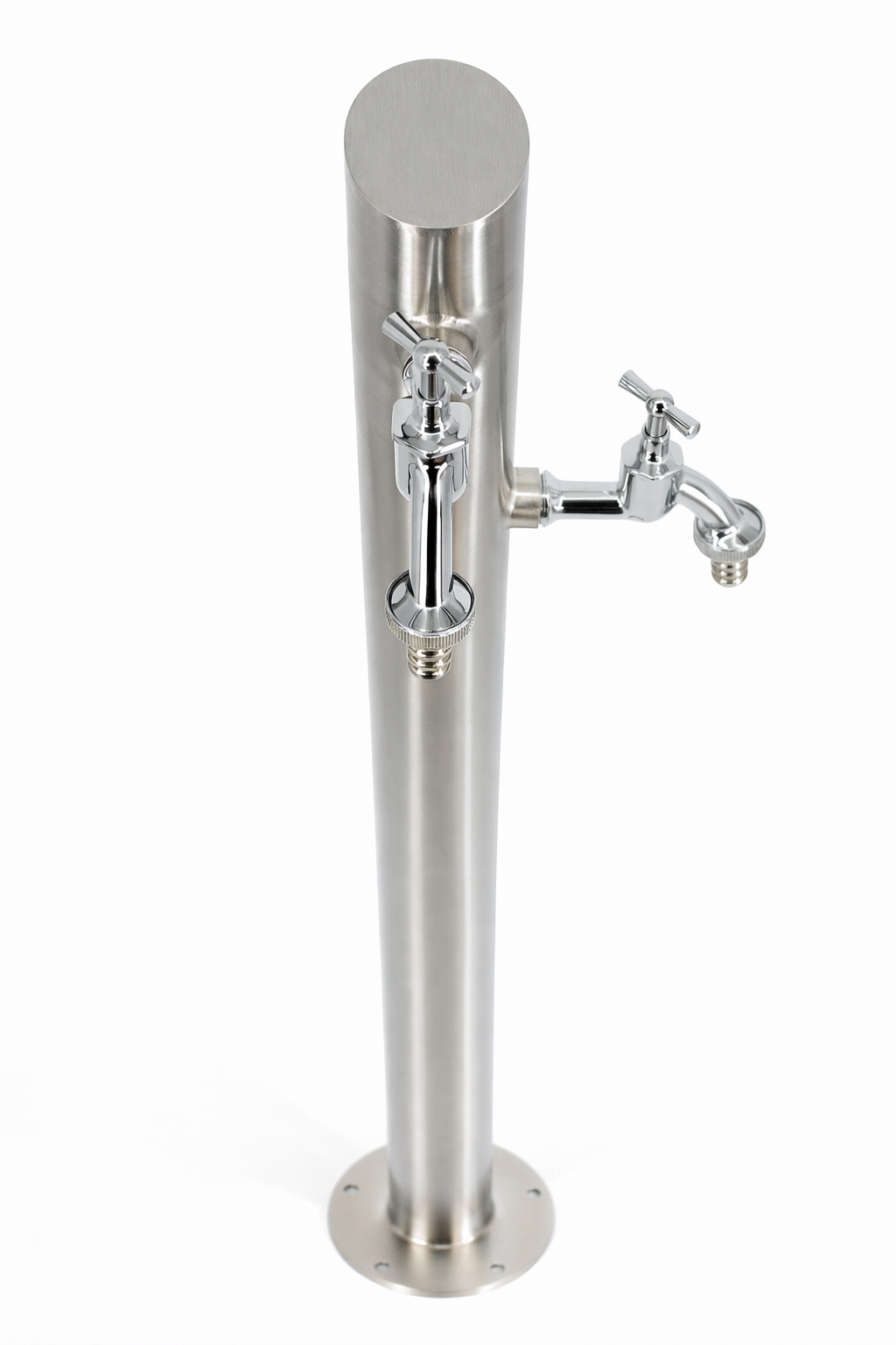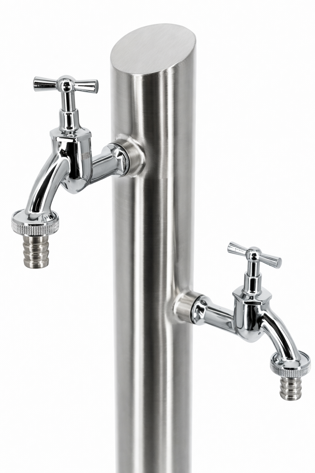 Słupek ogrodowy z dwoma zaworami czerpalnymi do poboru wody z sieci miejskiej, studni lub zbiornika na wodę opadową.