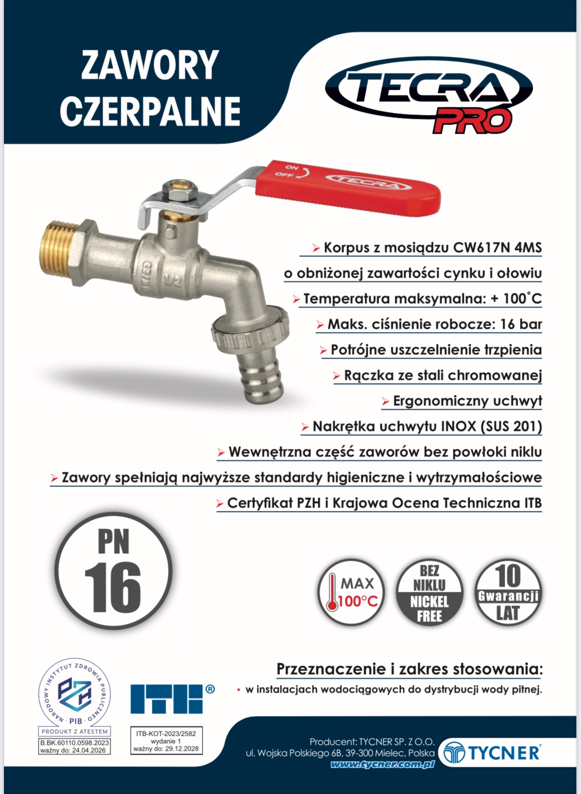 Przeznaczenie i zakres stosowania zaworów czerpalnych TECRA PRO: